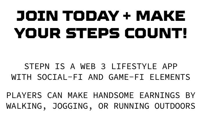 该公司在其官方网站上表示,“StepN旨在推动数百万人走向更健康的生活方式,应对气候变化并将公众连接到Web 3.0。”