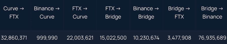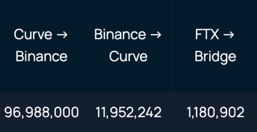 通过对中心化交易所的顶级 UST 净储户的扫描,我们交叉引用了一些早期(5 月 7 日至 5 月 8 日)通过 Curve 资金池交换 UST 的钱包。这些钱包可能通过 Curve 和随后的交易所退出了他们的一些 UST 头寸。