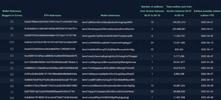 图 8:5 月 7 日至 5 月 10 日,按标记的钱包地址划分,Anchor 上的大额资金流出