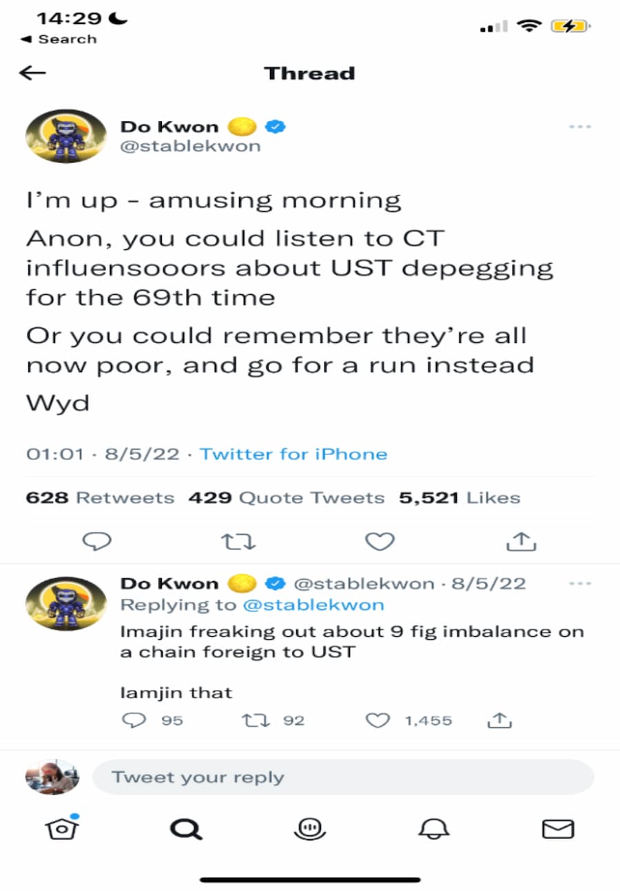 图 4:Do Kwon 的个人 Twitter 截图,2022 年 5 月 8 日