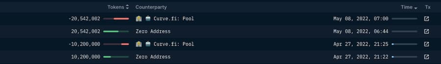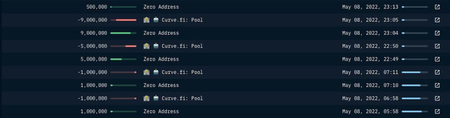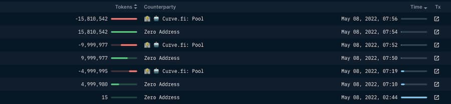 terra1yl8l5dzz4jhnzzh6jxq6pdezd2z4qgmgrdt82k (0x8d47f08ebc5554504742f547eb721a43d4947d0a on Ethereum, or the Curve UST inflow 「initiator」 (A))