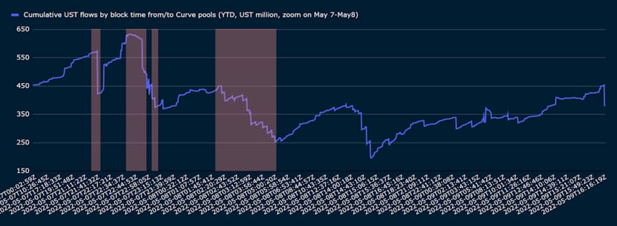 图 6:流向 Curve 的 UST 净流量时间表,以及当时 UST 交易量最大钱包地址