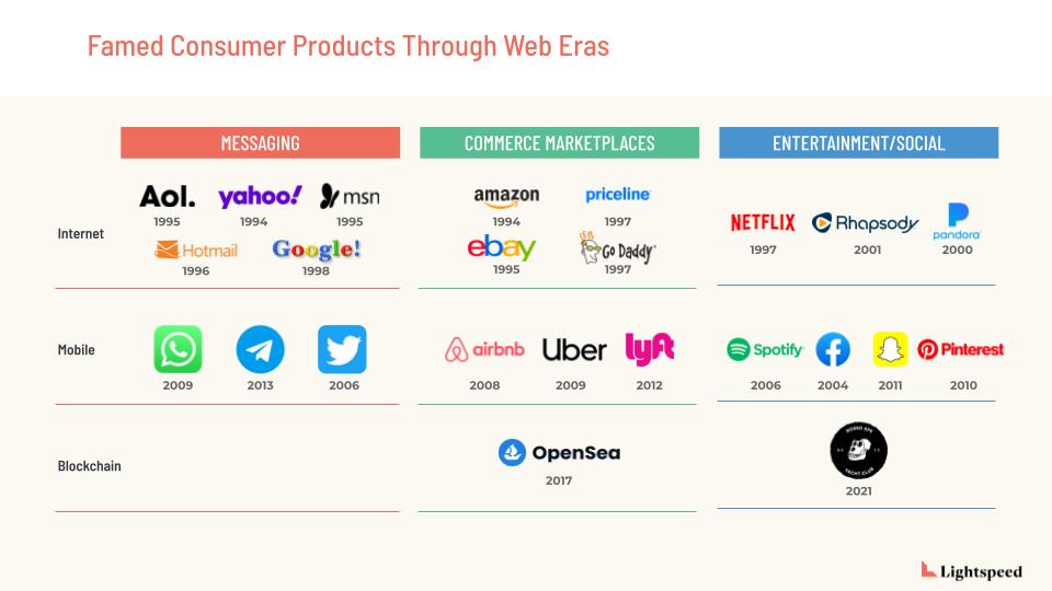 每一次新的技术变革都会产生一个新的信息传递巨头。在 Web1,它是电子邮件公司,如 AOL,雅虎,Hotmail 和 Gmail。在 Web2 中,出现了 SMS、Whatsapp 和其他的移动端信息传递公司的井喷。原因为何?