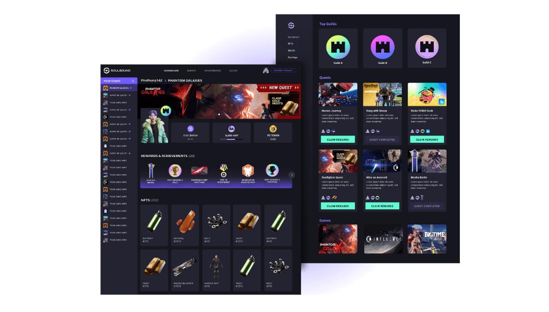 Soulbound同样是一个以成就系统切入的GameID平台,目前尚无Demo,但根据官网的消息可以推测,其拥有不错的in-game data接入,玩家可以通过完成特定游戏内成就来升级自己的声誉等级,并获得代币奖励,其与公会之间联结也比较深。