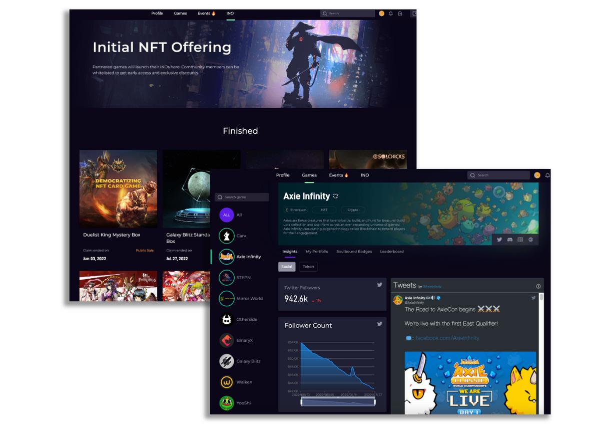 平台对于List的项目都提供了一个社交数据的分析,让玩家能快速发现有潜力的、高热度的游戏,同时也能跟踪自己所关注游戏的最新社交动态,对于玩家而言还是十分有帮助的。同时平台还拥有INO板块,让游戏可以进行NFT的首发,但这一块内容较为依赖项目方的BD能力,目前为止仅有10次发行。