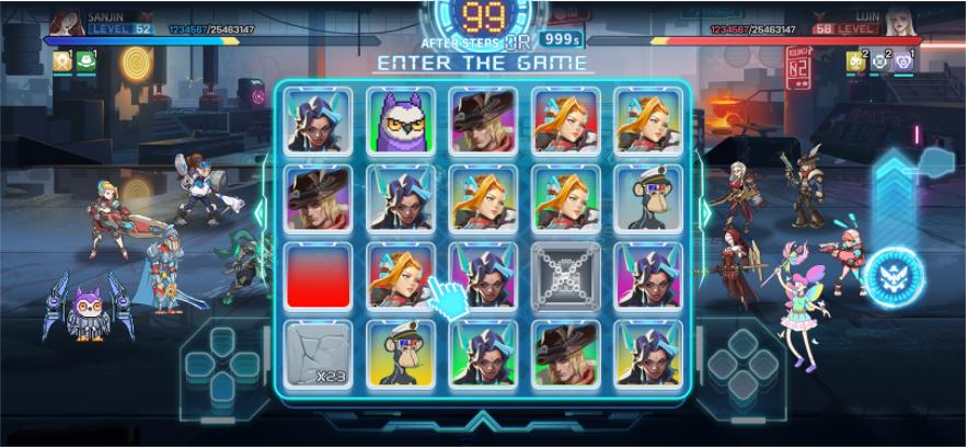 Big Brawl 将PFP NFT进行额外的赋能,在其游戏中,BAYC、Azuki、Moonbird、mimic等NFT变成了可以战斗的英雄;玩家可以进行副本通关以及好友之间的对抗,实现了NFT多角色的Q宠大乱斗。
