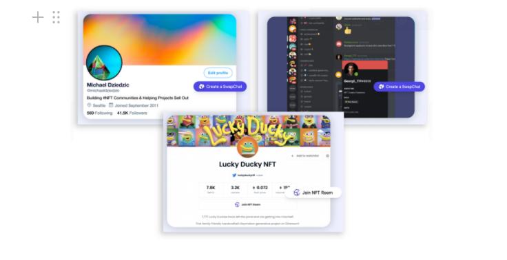 Swapchat是一款基于地址,实现跨社交平台的即时消息应用插件,作为插件其能同时支持Opensea、Twitter、Discord等场景的即时聊天,即你当在OS上发现了一个心仪的游戏装备NFT时,可以直接通过Swapchat与其发起1对1或是群组聊天,且该会话能延续到其他的web2社交平台中,这对于高频的游戏资产交易、即兴的玩法策略探讨等较为碎片化的交流有着很强的实用性。