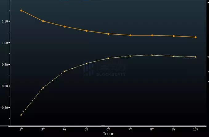美国 2s10s OIS 曲线以负 90 个基点交易,美联储政策越猛,反转的就越多。