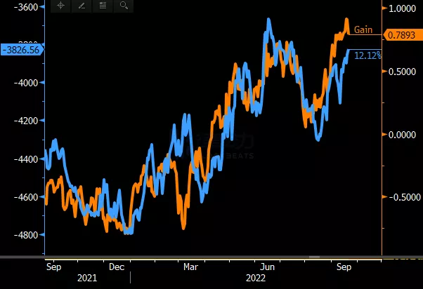 实际收益率基本没有变化,但鲍威尔会很高兴地注意到今天的整个实际收益率曲线(橙色)远高于 0%——紧缩政策还有条件持续更长的时间。而这在 3 个月前并非如此(黄色)。