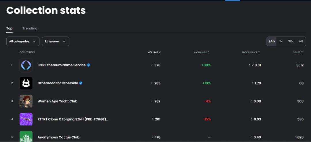 - 最贵的 ENS 域名类别,地板价超过 30 ETH。