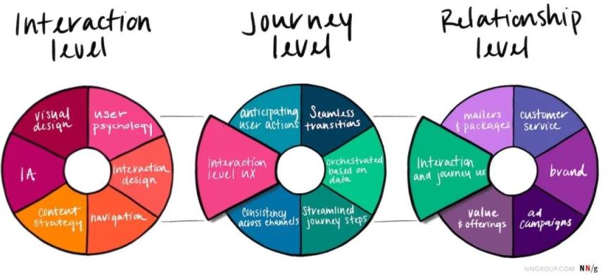 这三者覆盖了从现实世界到数字世界的整个用户体验。这个框架经常用于 CX 设计 ( 客户体验 ) 和服务设计。在大多数情况下,用户在访问我们的应用程序或网站之前就已经做出了许多决定。