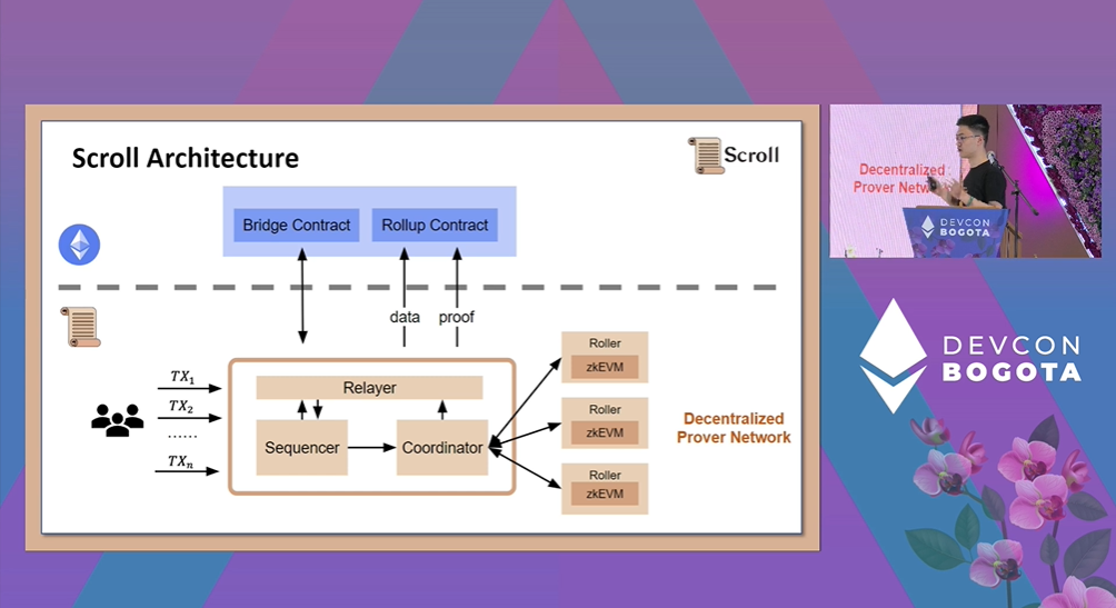 北京时间 10 月 14 日,在众多 zkEVM 项目角逐中脱颖而出的 Scroll 团队在 Devcon VI 分会场中介绍了 Scroll 的架构和未来路线图。主讲人是 Scroll 的联合创始人 Ye Zhang。