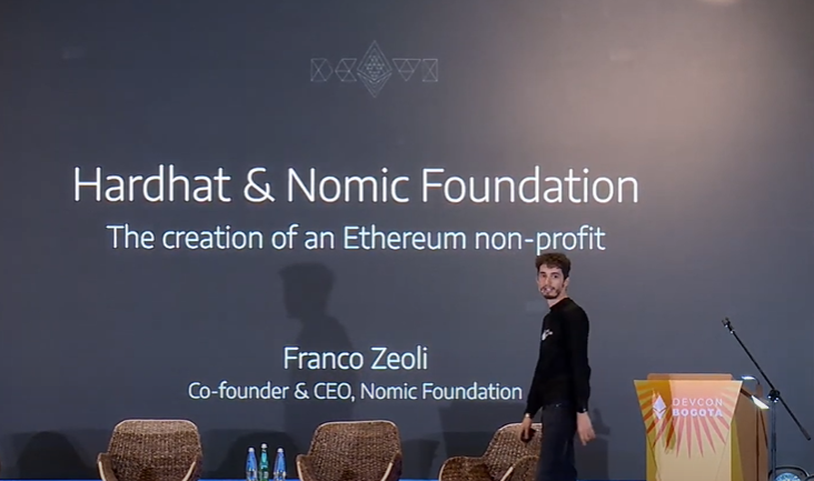 10 月 14 日,Nomic 基金会的联合创始人 Franco Zeoli 在 Devcon VI 上介绍其组织和项目 ——开发工具套件 Hardhat。该组织自 2021 年起转型为以太坊上的非盈利组织,Franco 称,这不仅是因为其团队对以太坊的热爱,也因为他们所创造的开发者体验对于以太坊来说至关重要,且非盈利转型本身也可能产生一定的社会影响。