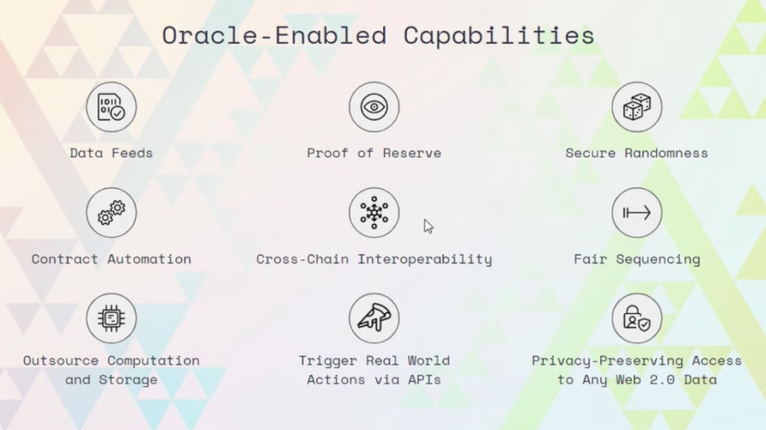 如一个经典的应用就是通过 VRF 和预言机实现链上安全的随机数。另外合约自动化的执行也是预言机的一个重要应用,由于合约在链上无法自执行,因此一个可靠的链下预言机网络可以很好地通过合约自执行功能扩展合约功能,提升用户的交互体验。