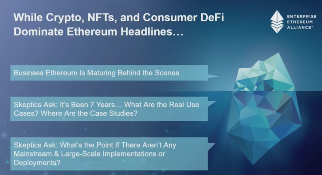 北京时间 2022 年 10 月 12 日,EEA (企业以太坊联盟) 在 Devcon6 上发布了其报告,除了加密货币,NFT 和 DeFi,大多数人不了解以太坊在(联盟链)商业上的应用。