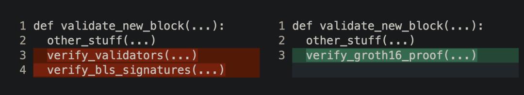 这个方案的难点主要是各种验证 (Validator, Signatures) 的开销太大, 没法链上 (EVM) 进行. 但是验证 ZKP 的开销更小, 因此最近有很多家在做 ZK Light Client。