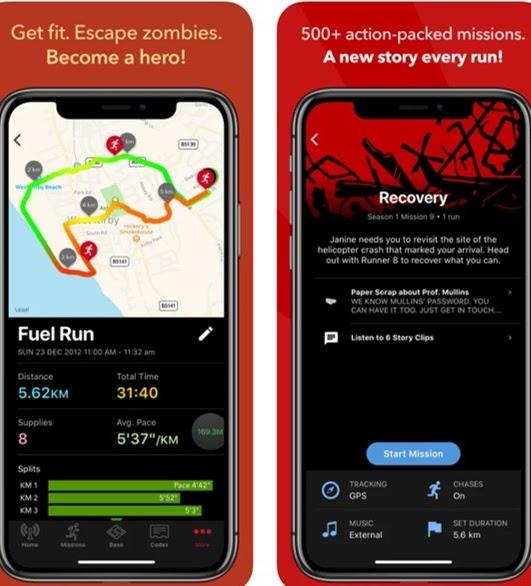 Zombies 是一款音频应用程序,用户在其中扮演僵尸疫情中的幸存者。Zombies 通过让用户执行有目标的任务来激励他们跑步,如寻找物资或逃离僵尸。用户通过跑出一定的速度或距离而获胜。该应用程序跟踪每一次跑步,并通过电子邮件发送每日进度报告,庆祝不同里程的里程碑和任务的完成。