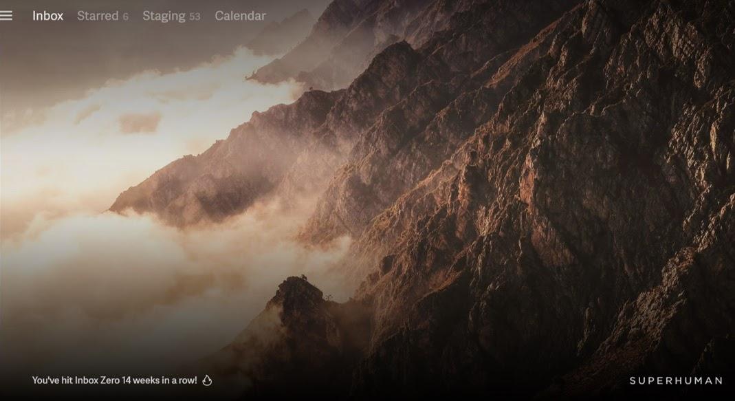 电子邮件应用程序 Superhuman 也是一个游戏式的例子。在前游戏设计师 Rahul Vohra 的领导下,Superhuman 为其用户设定了一个目标,收件箱为零,并提供微调的控制和收件箱规则,帮助用户完成流程。当用户达到 "零 "收件箱时,Superhuman 会显示一幅美丽的、高清晰度的自然风景图片,并且每天改变。在图像的底部,Superhuman 跟踪用户达到 "零 "收件箱的天数,这也强化了通往精通之路。