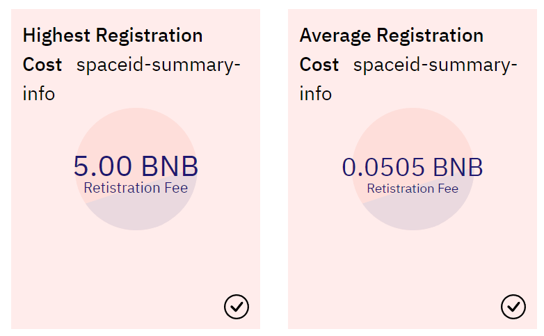 Dune 数据显示,SPACE ID 平均注册成本为 0.0505 BNB,最高注册成本为 5 BNB。