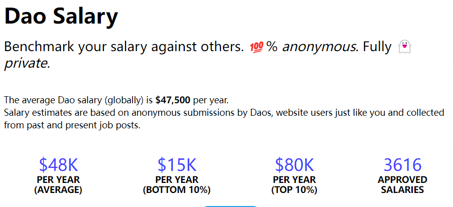 根据一项 cryptojobslist 的匿名调查,为 DAO 工作的平均年薪在 4.8 万美元,最低年薪也有 1.5 万美元。