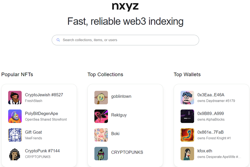 Nxyz 原名「Neeva.xyz」,最初的定位是基于 Web3 搭建一个无延时的搜索引擎,能够实时更新区块链相关数据,随着区块链应用的丰富,Nxyz 不仅支持用户搜索查询各种资产、加密钱包、应用外,还逐渐成为一个多链 API 检索工具,可实时访问多条区块链网络的数据信息,除了便于研究机构观察区块链发展外,还可以辅助开发者通过 API 套件衡量真实链上数据,考量应用产品落地的机会。