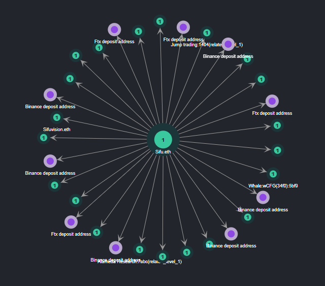 以 0xScope 为例,除了提供风投、巨鲸、高风险地址数据外,这个平台还提供地址聚合功能,输入一个钱包地址能够显示所有相关地址。基于这个功能,就你关心的某个 NFT,你可以去研究这个 NFT 的 KoL 是否大号持仓该 NFT,小号却在抛售,从而更接近真相,并指导操作。