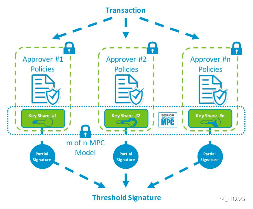MPC,全称为 Multi-Party Computation,是一种重要的加密安全措施。其包含了很多种技术方案,在本文的语境下主要指 MPC-TSS。而 MPC 钱包,是通过对私钥进行多方计算在链下实现 “多签 “、” 跨链 “等等更复杂的验证方式。简单来说,就是将一个私钥打碎成多片,将私钥碎片交与一个去中心化的网络进行计算和加密。当需要私钥签名时,则将碎片再拼接起来形成一个完整的私钥。MPC 的核心思路为分散控制权以达到分散风险或提高备灾的目的,有效避免了单点失败等安全问题。
