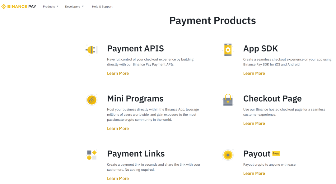 中心化交易所也为商家提供支付解决方案(如 Coinbase Commerce、Binance Pay、FTX Pay),包括交易所托管的支付界面和帮助商家自行部署前端的 API 和 SDK。商家和其客户使用同一交易所托管的钱包不会产生任何费率,因为钱款只是在同一托管钱包里的不同账户间转账。商家或其客户其中一方使用自托管钱包会产生区块链网络费,因为加密币会转账到另一个钱包地址。商家也可以选择在收款时把加密币自动转换成法币,并存在交易所托管的银行账户上或者直接存在商家自己的银行账户上。如果是后者,交易所需要帮商家开一个商业法币账户。