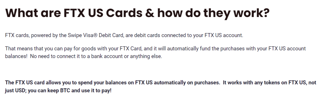 案例:通过 FTX 借记卡,用户可以用 FTX 托管账户里的加密币支付法币计价的商品和服务