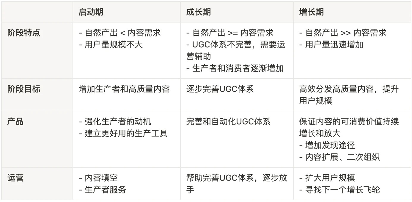 - 成长期:逐步完善 UGC 体系,让社区可以自运转