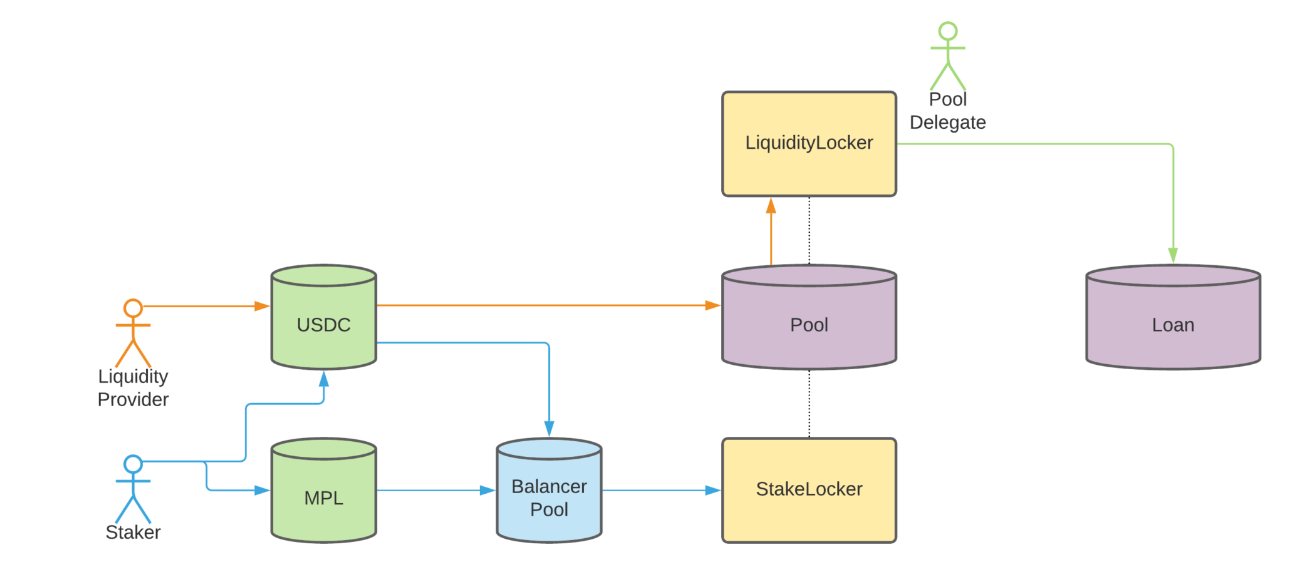 - 质押 MPL-USDC50-50BPT 作为贷款违约准备金,以获得部分持续费用。