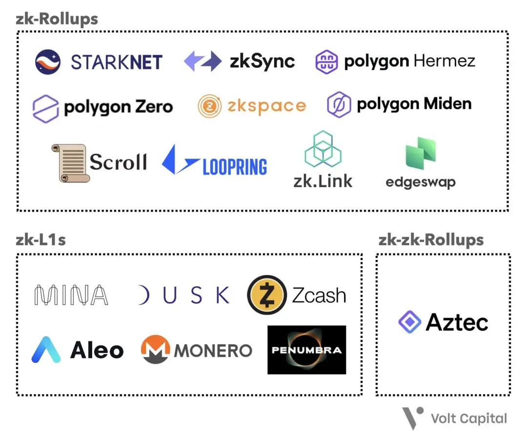 - zkSync、StarkWare(StarkNet),它们更注重更注重证明速度