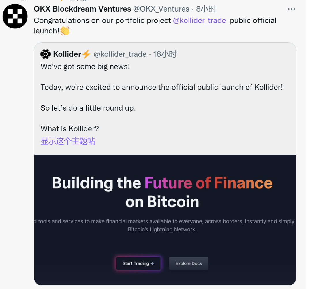 - 比特币衍生品交易所 Kollider 完成 235 万美元种子轮融资 ,Lemniscap 领投