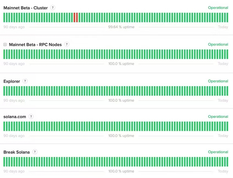 Solana 因难以应对这些问题而出了名,经历了多次性能下降和宕机。自2021 年9 月以来,该网络已发生4 次完全宕机,共停机37 小时11 分钟。