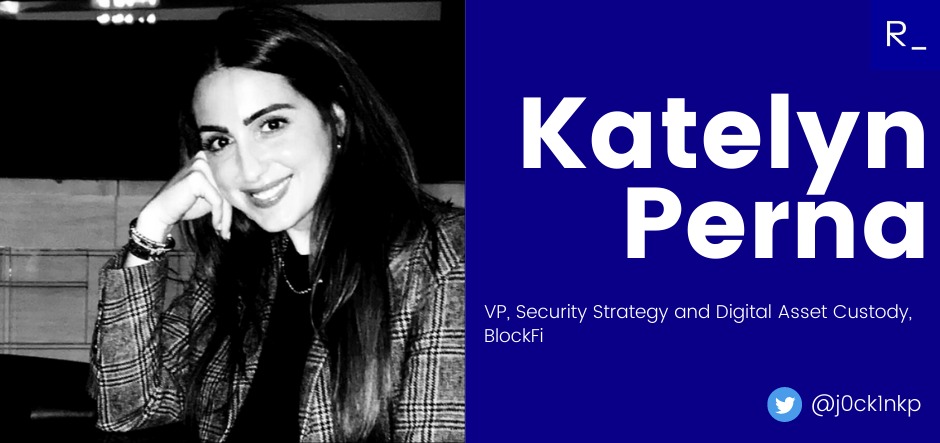 Katelyn Perna 是 BlockFi 的安全战略和数字资产托管副总裁,BlockFi 是一家总部位于美国的加密货币交易平台,提供包括贷款和加密信用卡在内的各种金融产品。