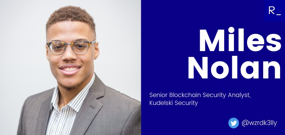 Miles Nolan 是网络安全公司 Kudelski Security 的高级区块链安全分析师,该公司目前也将区块链包含在业务范围内。