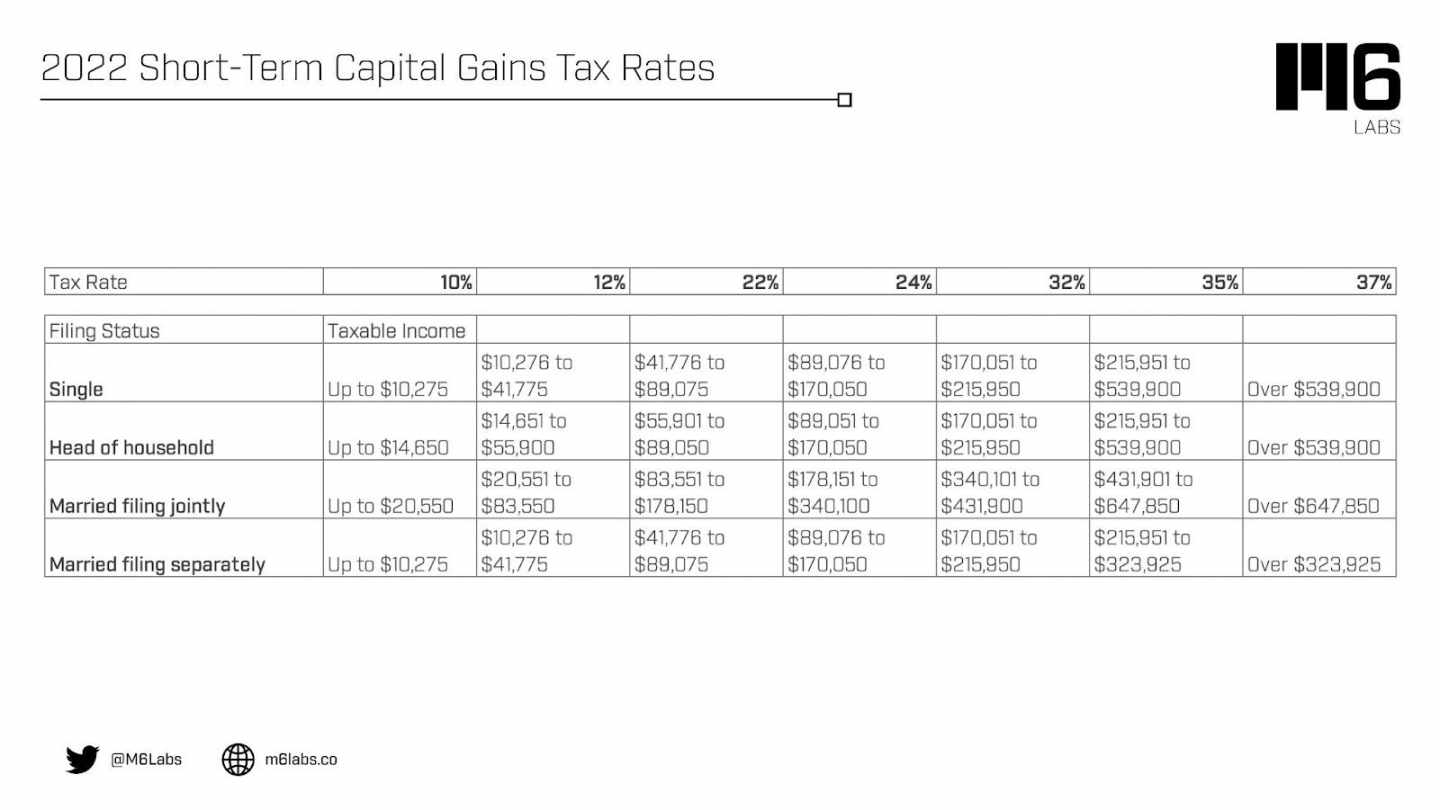 对于通过加密活动赚取的短期资本利得或普通收入,你应该使用下表来计算你的资本利得税: