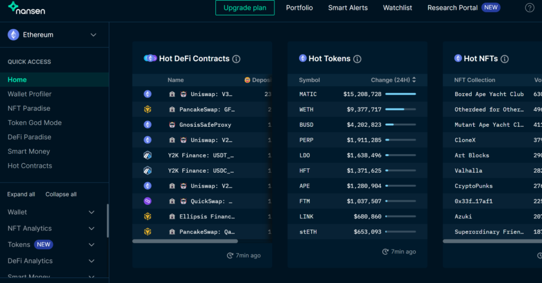 Nansen 通过标记加密钱包来增强实时链上数据的信号。目前 Nansen 已标记了上亿个钱包,包括 V 神及一些基金等的公开地址,还有很多拥有巨大资金体量的匿名地址。散户和机构投资者都使用 Nansen 来发现交易机会。该平台目前支持 Ethereum、Polygon、BNB Chain、Avalanche、Fantom、Arbitrum、Ronin、Celo 等公链。