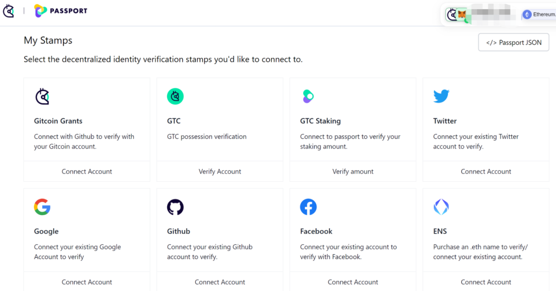 Gitcoin Passport 是 Gitcoin2.0 中推出的一个用来防范女巫攻击的 Web3 身份验证聚合器。用户可在 Web2 和 Web3 的不同身份验证者那里收集 “印章”,印章是可验证的凭据,Passport 则汇聚多个印章并分配信任。dApp 与 Passport 集成后,可通过自定义算法验证身份,他们也可以在算法中根据不同的偏好设定不同的印章权重。