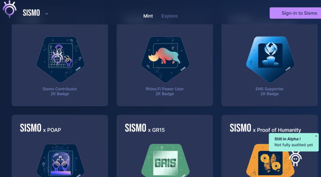 基于用户/钱包交互,Sismo 允许用户申请 ZK 认证。使用 Sismo 的 SDK,开发人员现在可以使用 Sismo 的认证来锁定用户群体。目前还是 Alpha 测试阶段。