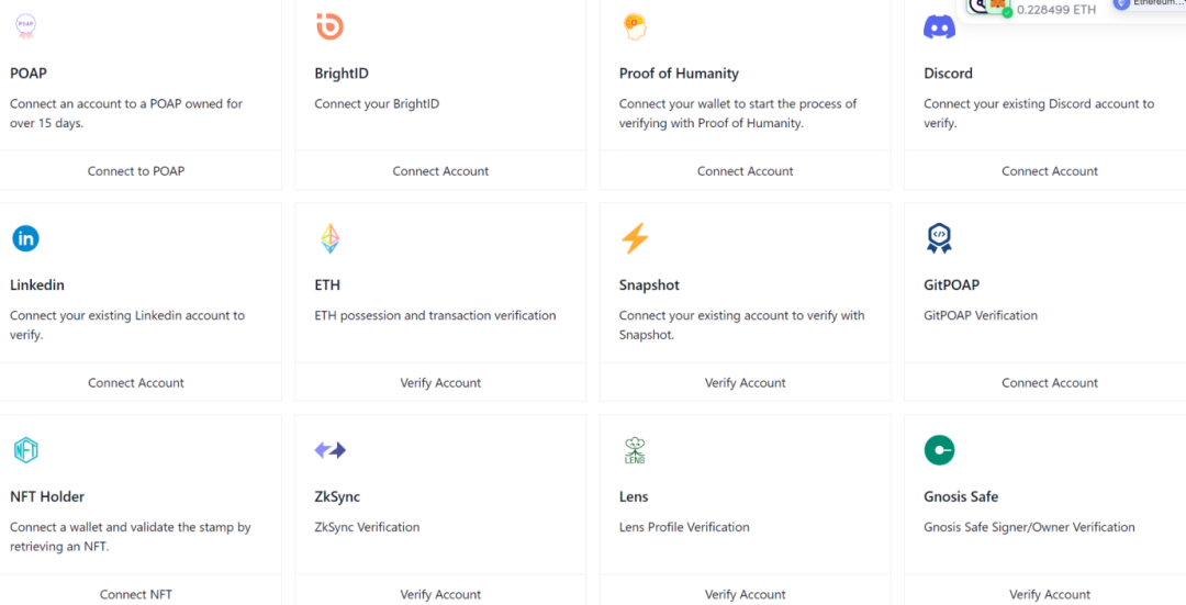 目前 Gitcoin Passport 聚合的身份验证项目或平台包括: