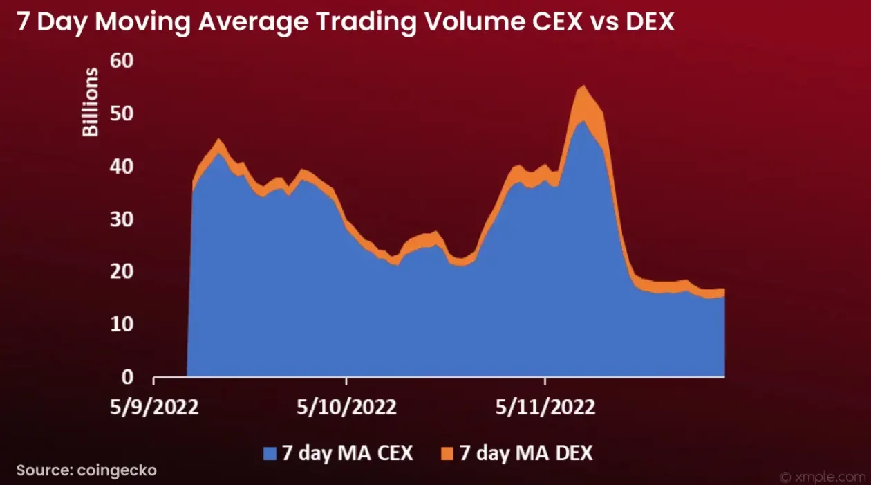 显然,在市场份额方面,DEX 交易量有所增加。然而增加并不显着,因为只有一小部分增长,但现在又慢慢减少。用户还在使用 CEX 交易吗?