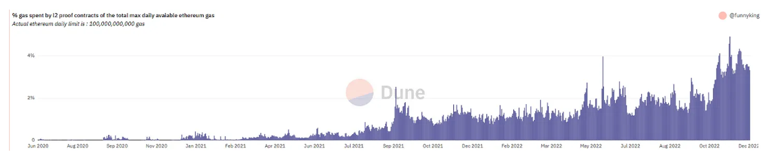 以下是 layer 2 交易占以太坊总 gas 费用的百分比(总交易的代理):