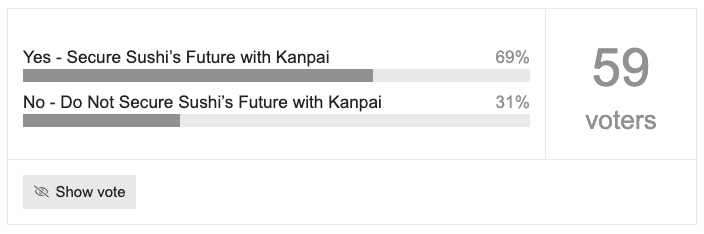 - 三是 Jared 在投票选项上的措辞(反对选项是 “我就不用 Kanpai 来拯救 Sushi 的未来”)是否有煽动社区之嫌?