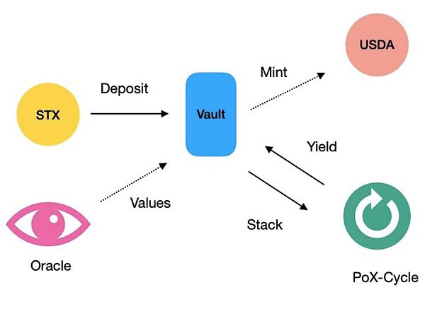 Arkadiko平台的主要应用是抵押资产铸造平台的USDA稳定币,模式与MakerDAO类似,用户在Arkadiko的Vault中存入STX,通过超额抵押的方式,铸造软锚定于美元的稳定币USDA,存入其中的STX还可以依靠Stacks的PoX机制获得收益。除此之外,用户还可以使用STX代币作为交易和支付费用的工具,并通过抵押STX代币来获得借款,Arkadiko的借贷利率较低,对用户而言非常有吸引力。另外,Arkadiko 还提供了流动性池、稳定币交易和收益农场等功能,让用户可以参与到更多的DeFi产品和服务中。同时,Arkadiko的开发团队致力于提供更多的创新性DeFi产品和服务,为用户提供更好的金融体验。
