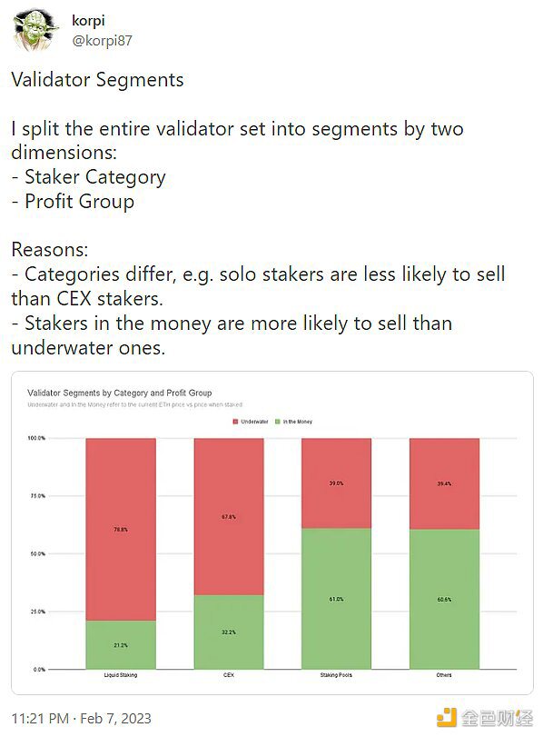 我的一些 CToors 同伴已经得出结论,在水上的质押者(验证者以低于当前市场价格的 ETH 价格进入)比在水下的质押者更有可能出售。