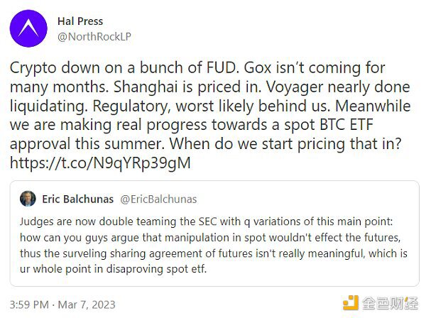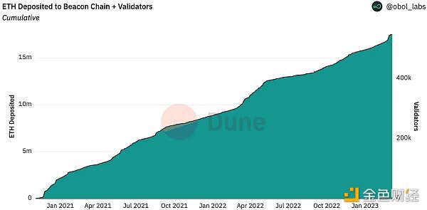 交易量从 1 月 18 日的高点继续呈下降趋势,shapella 之后意外的巨大奖励抛售压力可能会破坏撤资是净利好的整个叙事,导致可能考虑过出价的交易员感到担忧,并创造一个自我实现的下行螺旋预言。