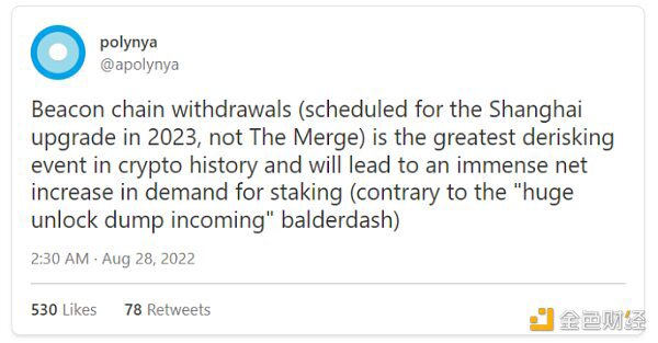 围绕 CT 的另一种常见说法是,提款是以太坊路线图上的一个主要去风险点。