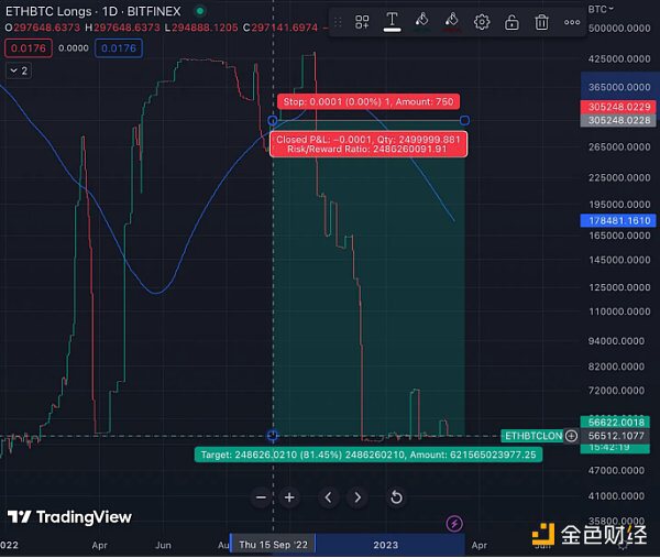 需要承认的是,这种交易明显没有合并时那么拥挤,Bitfinex 上的 ETH/BTC 多头从 9 月 15 日开始下降了惊人的 81.5%。