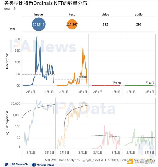 PAData 综合了比特币的链上数据(1 月 21 日至 3 月 7 日)和 OrdinalsNFT 的交易数据对当前的 NFT 类型、交易规模、用户规模、矿业变化和网络基本面进行分析,结果显示: